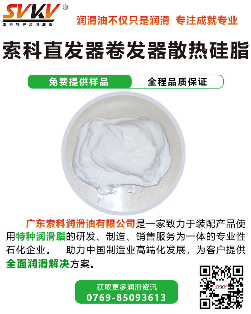 索科SVKV卷發(fā)器散熱硅脂專為直發(fā)器卷發(fā)器而研制,能有效改善產(chǎn)品散熱狀況,保證設(shè)備處于適宜溫度。