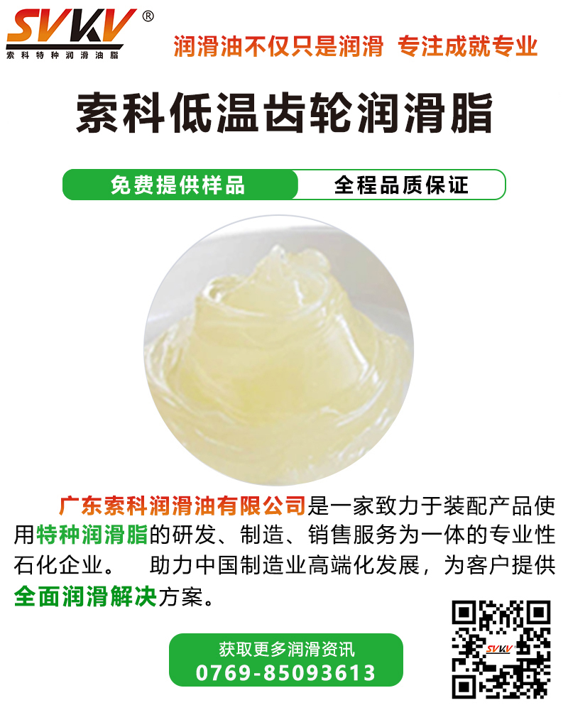 廣東索科潤(rùn)滑油有限公司是一家致力于裝配產(chǎn)品使用特種潤(rùn)滑脂的研發(fā)、生產(chǎn)、定制、服務(wù)為一體的專業(yè)性石化企業(yè)。致力為制造業(yè)客戶,提供專業(yè)的選油方案,協(xié)助客戶解決產(chǎn)品裝配時(shí)的潤(rùn)滑難題,還可根據(jù)客戶特殊需求訂做適合的潤(rùn)滑油品。有效提高產(chǎn)品性能、減低維護(hù)成本,索科助力制造業(yè)高端化發(fā)展! 主要產(chǎn)品有: 齒輪消音潤(rùn)滑脂|高溫潤(rùn)滑脂|食品級(jí)潤(rùn)滑脂|齒輪消音潤(rùn)滑脂|防水潤(rùn)滑脂 導(dǎo)電油脂|軸承油|硅油|干性皮膜潤(rùn)滑劑|低溫潤(rùn)滑脂|阻尼脂|全氟油脂