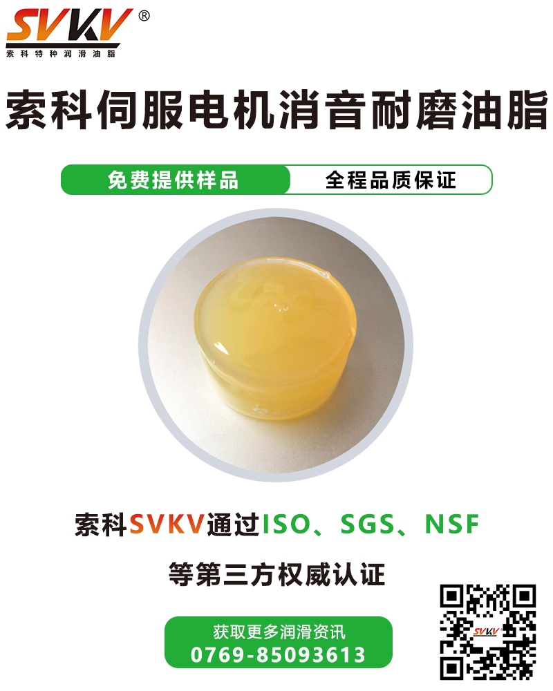 索科SVKV伺服電機(jī)消音耐磨油脂選用高性能基礎(chǔ)油,并添加多種高效抗氧化、抗腐蝕添加劑精制而成,是專為伺服電機(jī)齒輪消音耐磨潤滑所研發(fā)的潤滑油脂。索科SVKV伺服電機(jī)消音耐磨油脂能有效減少伺服電機(jī)齒輪磨損,降低噪音,延長齒輪使用壽命。