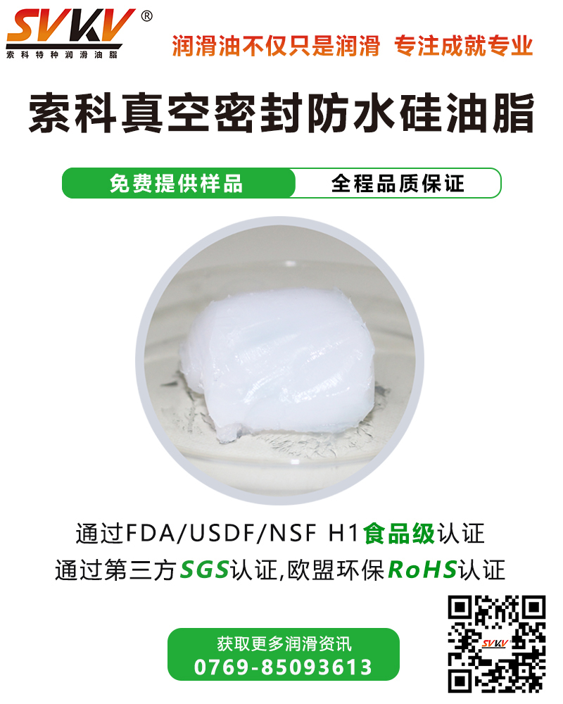 索科真空密封防水潤滑脂是由精煉合成油作為基礎(chǔ)油稠無機(jī)稠化劑,并加有結(jié)構(gòu)穩(wěn)定劑、多種添加劑精制而成特種油脂,具有良好的防水密封性、防水、抗溶劑性和抗爬電性能,不腐蝕金屬,與橡膠多具有較好的適應(yīng)性,用于磨口玻璃、O型密封圈、陶瓷、金屬或塑料水龍頭、閥門接頭等低速轉(zhuǎn)動(dòng)部位的密封和潤滑。